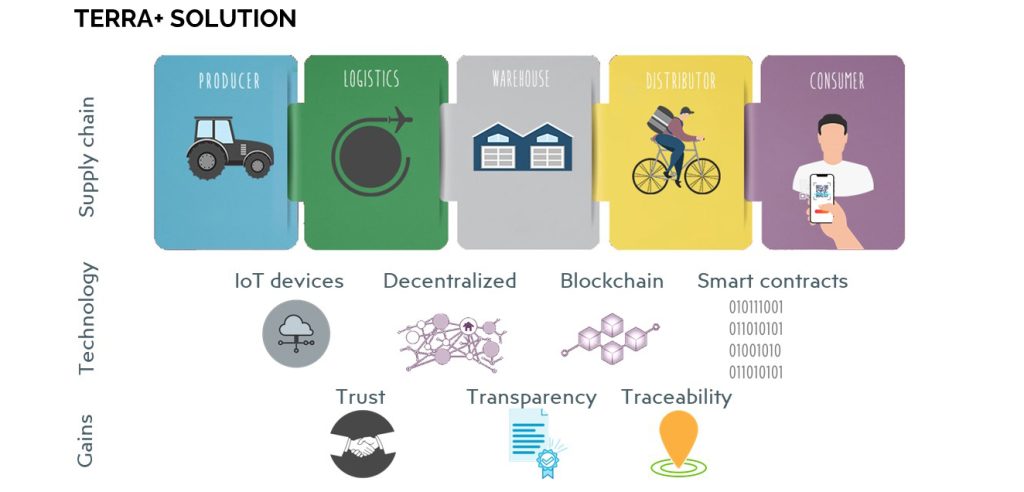 TERRA+ offers monitoring and recording agri-food products during their life in the supply chain from the production unit to the consumer’s shelf. In essence, a digital profile of the product is built that the user can retrieve by scanning a QR code with his mobile phone.