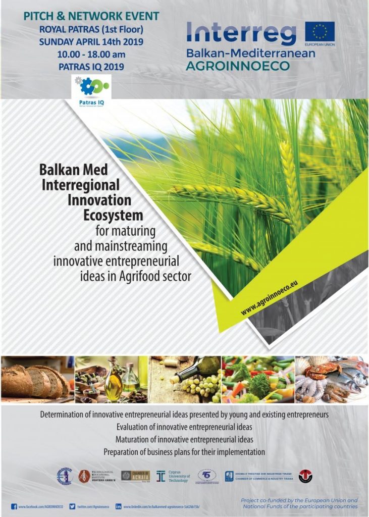 Εκδήλωση Δικτύωσης (Networking Event) διοργανώνει το Επιμελητήριο Αχαΐας στα πλαίσια υλοποίησης του έργου AGROINNOECO κατά την 6η Έκθεση Καινοτομίας & Μεταφοράς Τεχνογνωσίας – PATRAS IQ 2019.